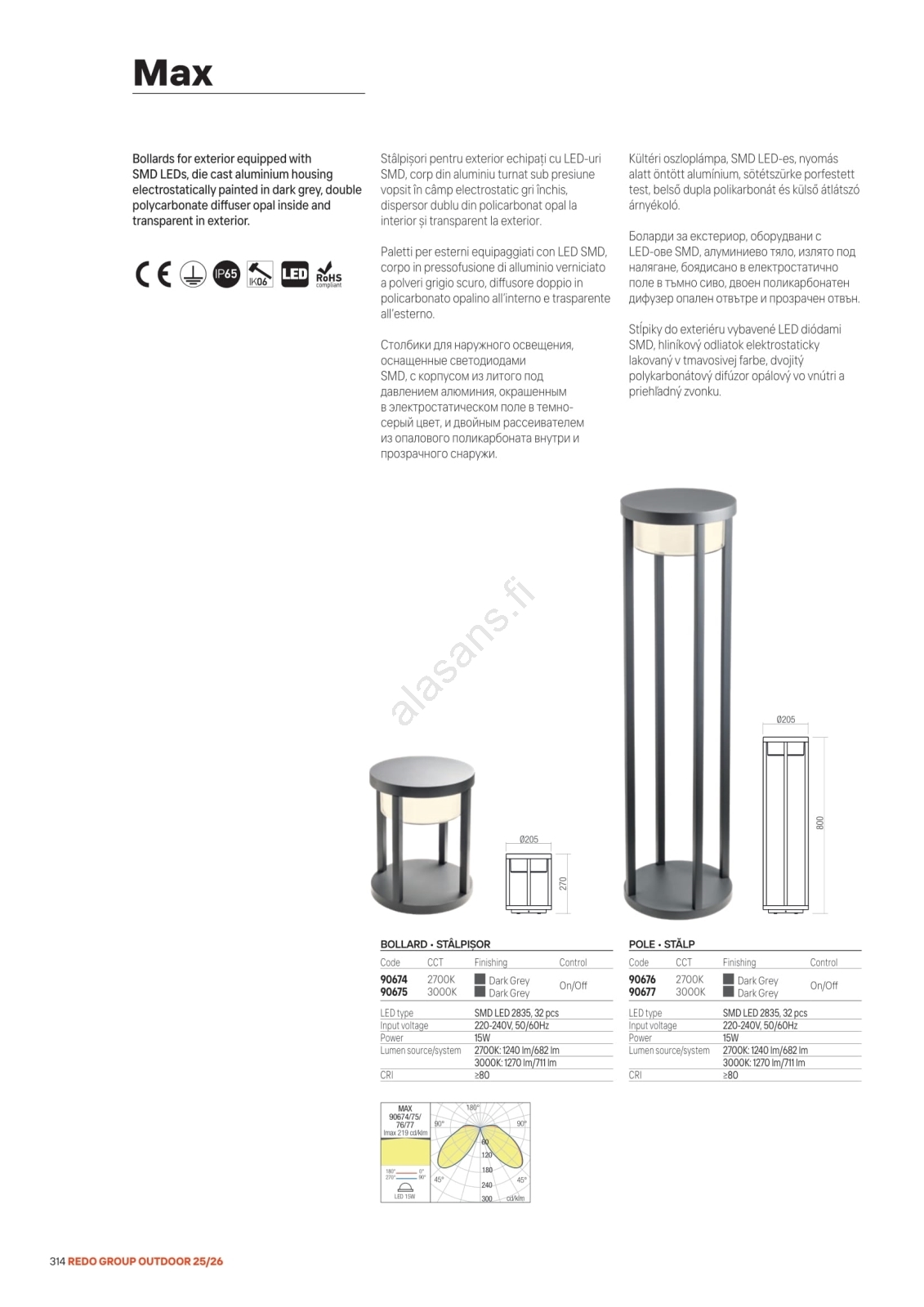 Redo 90676 - MAX LED ulkovalaisin 15W/230V 2700K 80 cm IP65 antrasiitti | Alasans