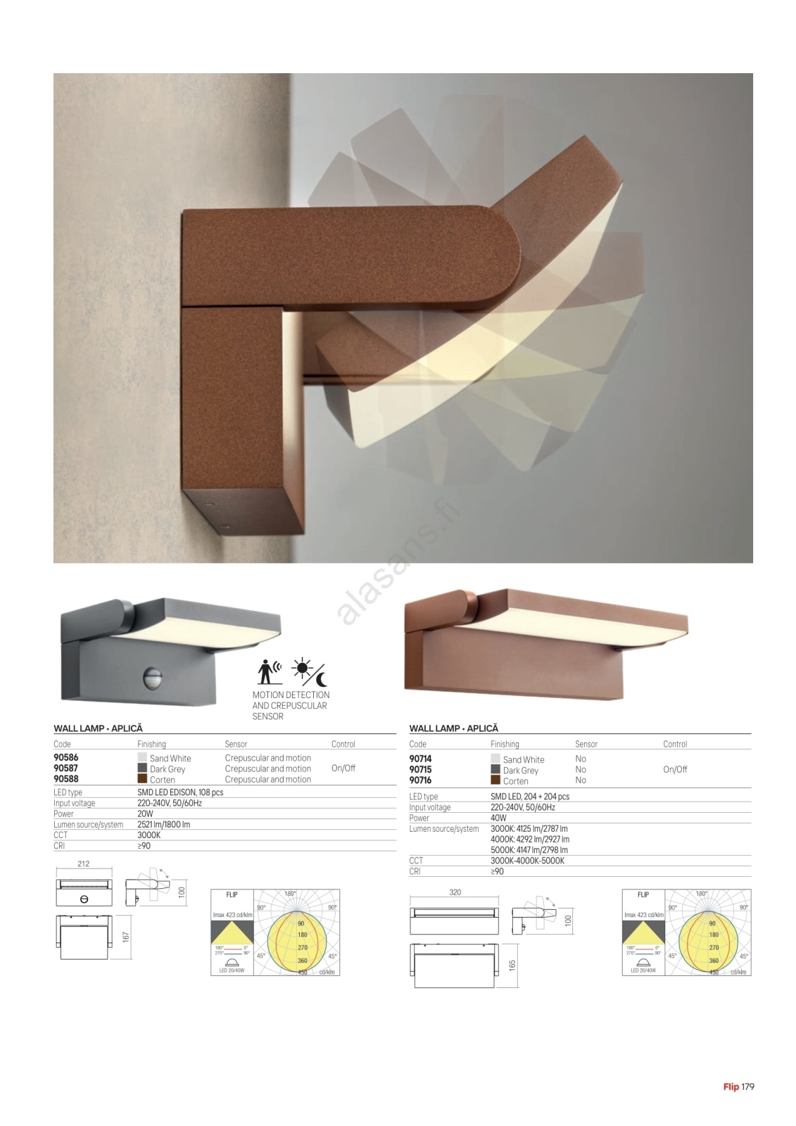 • Redo 90716 - FLIP LED ulkoseinävalaisin, 40 W, 230 V, 3000/4000/5000 K, CRI 90, IP54, ruskea