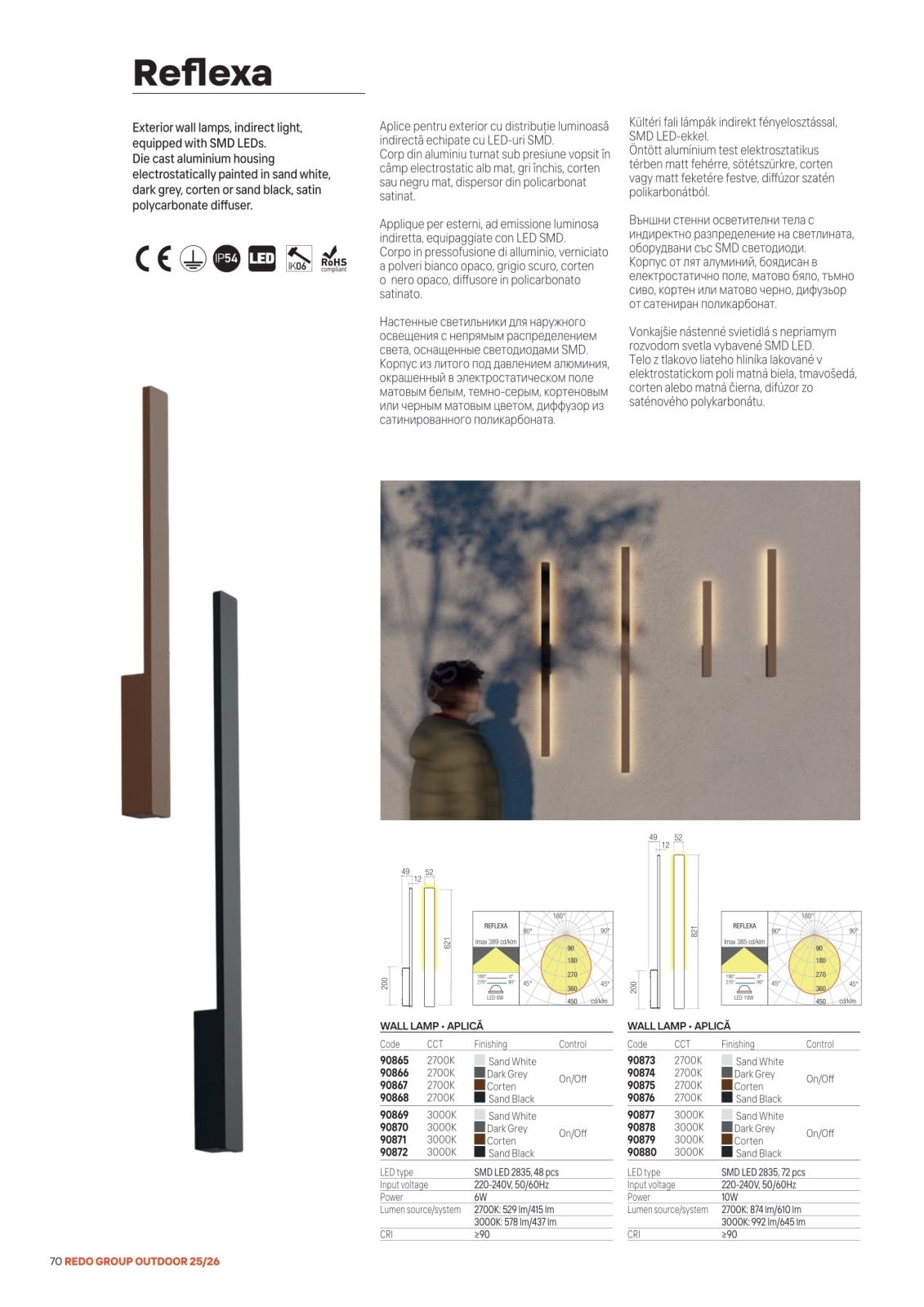 • Redo 90869 - REFLEXA LED ulkoseinävalaisin/6W/230V 3000K CRI 90 IP54 valkoinen