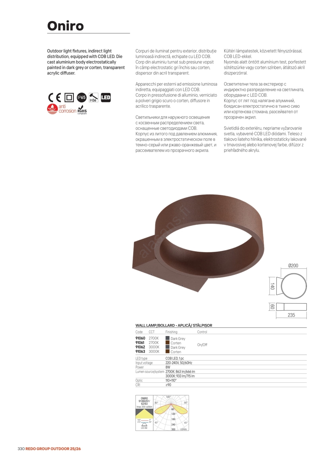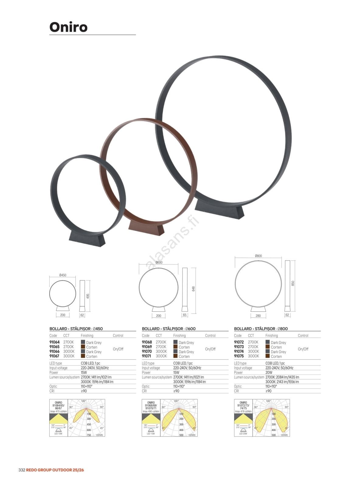 Redo 91067 - ONIRO LED-ulkovalaisin 15 W, 230 V, 49,5 cm, CRI 90, IP65, ruskea | Alasans