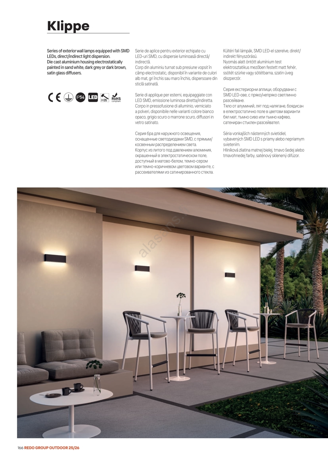Redo 9622 - KLIPPE LED ulkoseinävalaisin 13 W, 230 V, 3000 K, IP54, valkoinen | Alasans