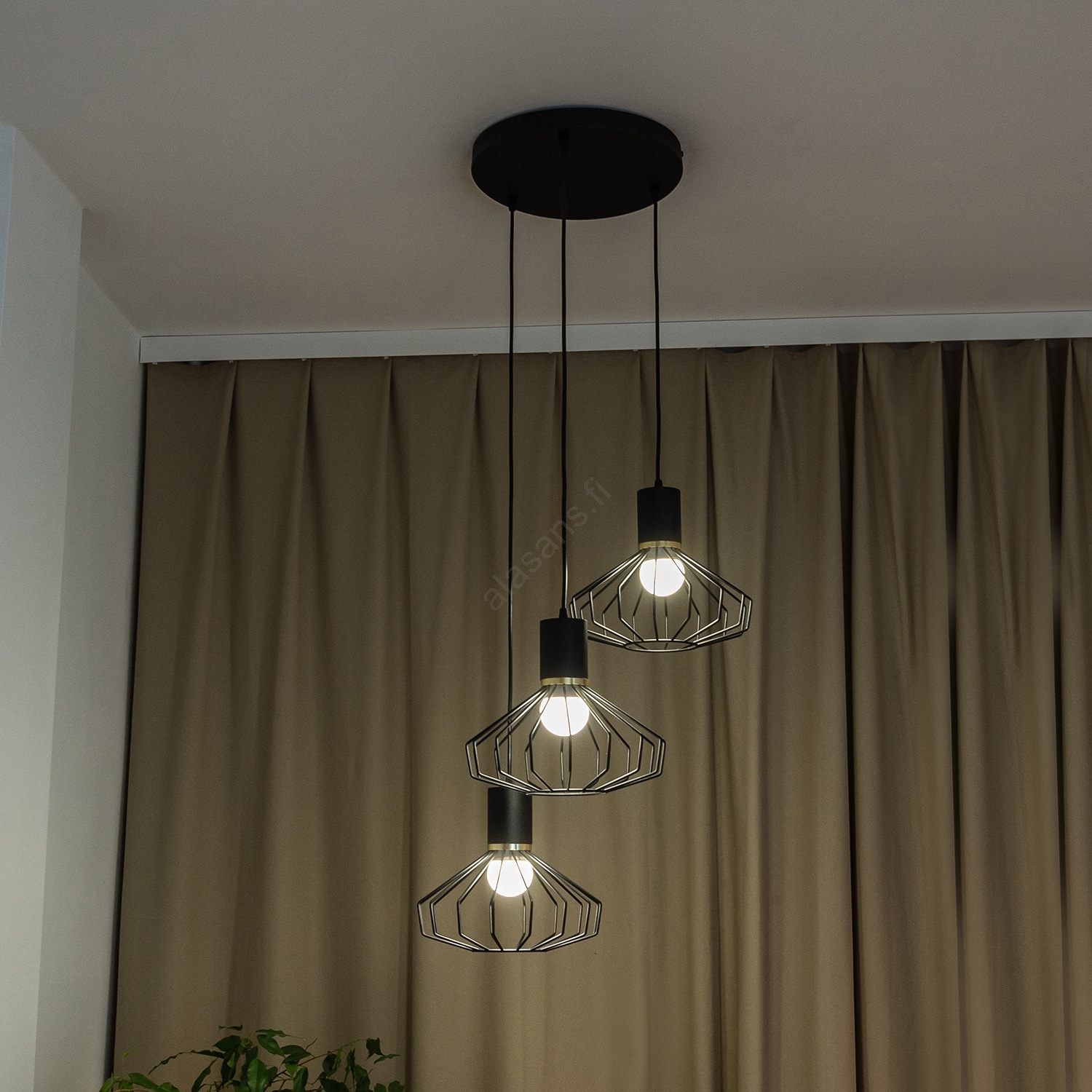 • Riippuvalaisin vaijerilla SOLANO 3xE27/15W/230V musta/kulta