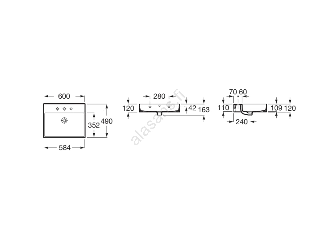 • Pakkaus sisältää pesualtaan ilman viemärisifonia ja hanaa.