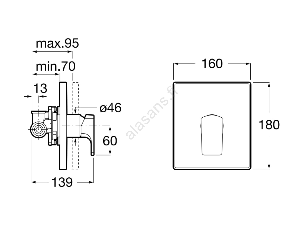 • Seinäasennettava suihkusekoitin piiloasennusta varten.