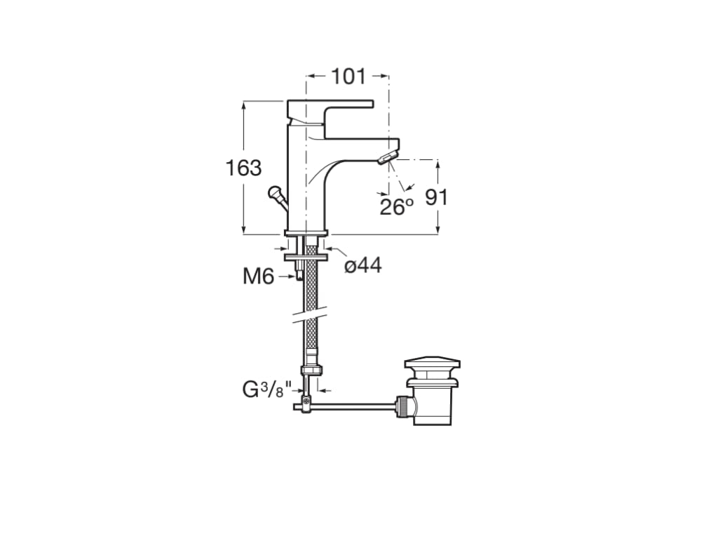 Roca A5A306AC0K - Lavuaarihana + pohjaventtiili AROLA 16,3 cm kiiltävä kromi | Alasans