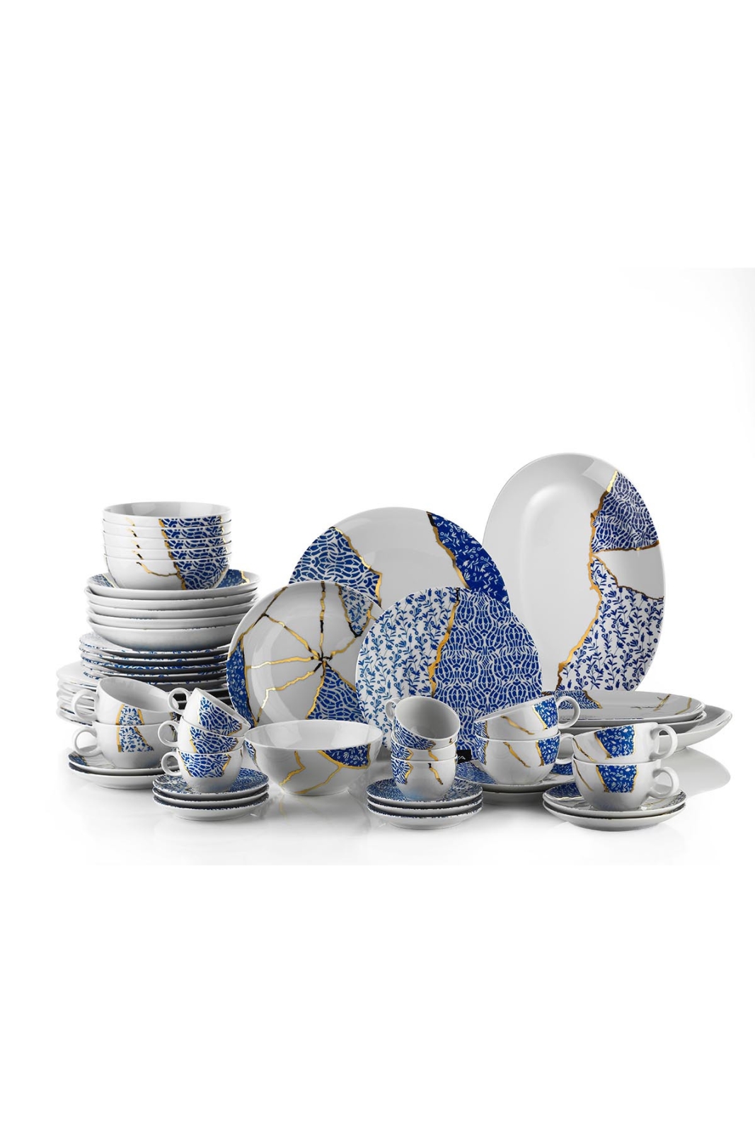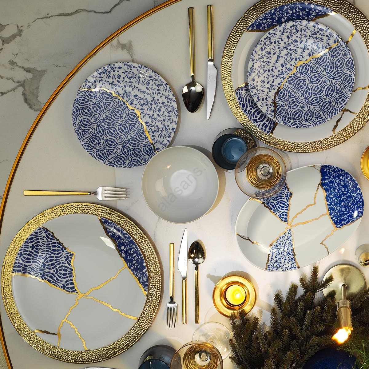 Ruokailusetti 28 kpl valkoinen/kultainen/sininen/posliini | Alasans