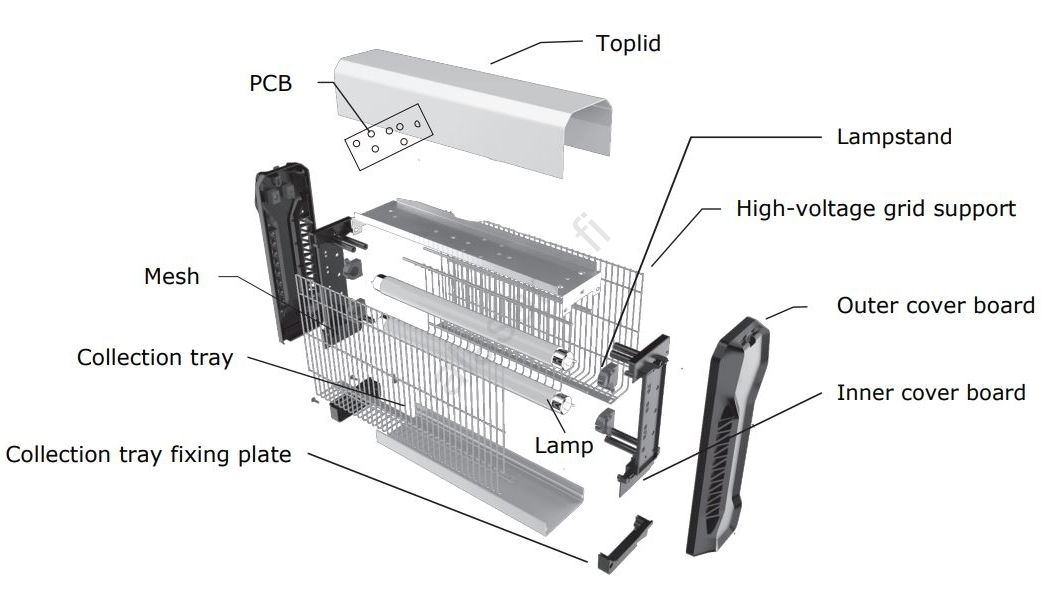 • Irrotettava ja pestävä keräysastia kuolleille hyönteisille.