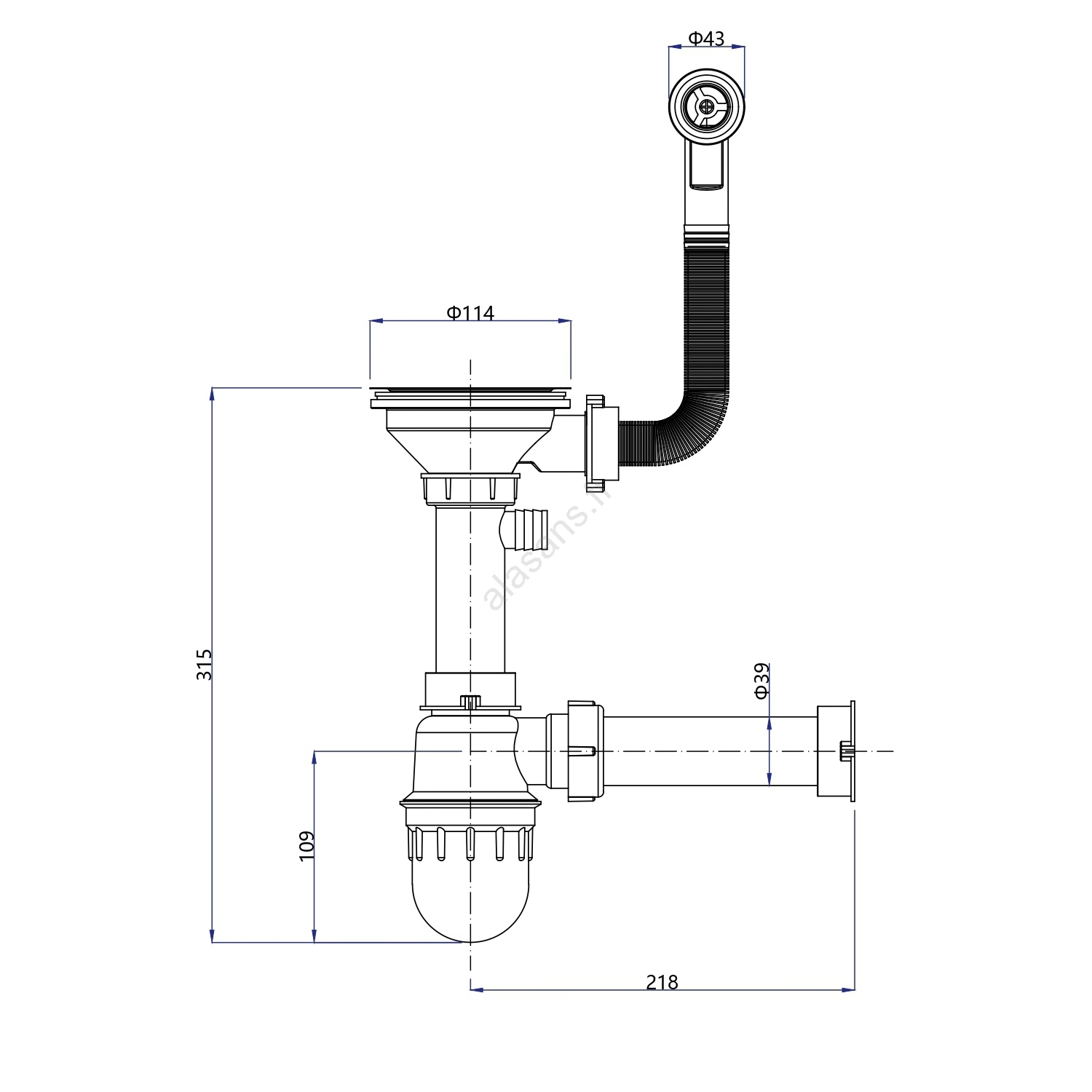 • Allas on tarkoitettu päälle asennettavaksi ja siinä on viemärisifoni, jossa on liitäntä astianpesukoneelle tai pyykinpesukoneelle.