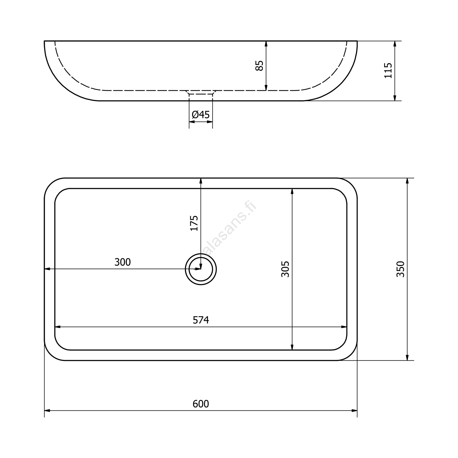 Sapho - BLOK tasolle asennettava pesuallas 60x35 cm kivi/mattamusta | Alasans
