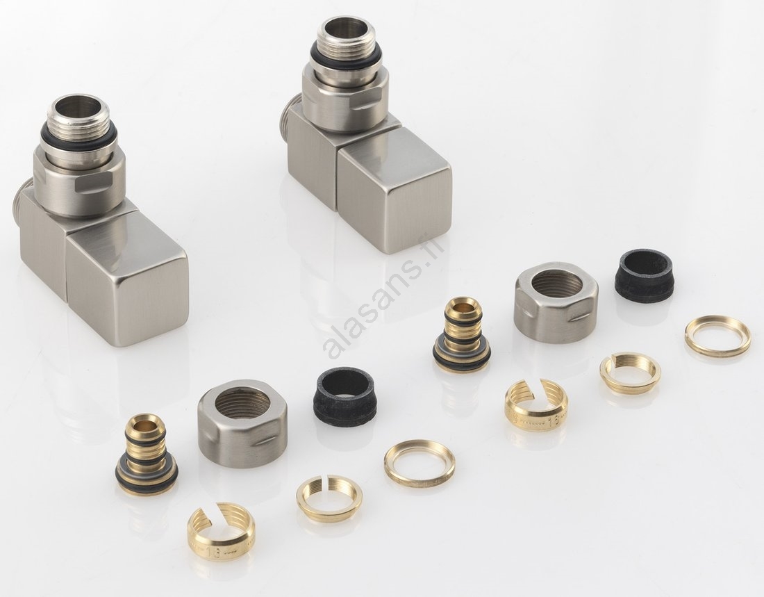 Sapho - CUBE kulmaventtiilien liitossetti, 2 kpl, harjattu ruostumaton teräs | Alasans