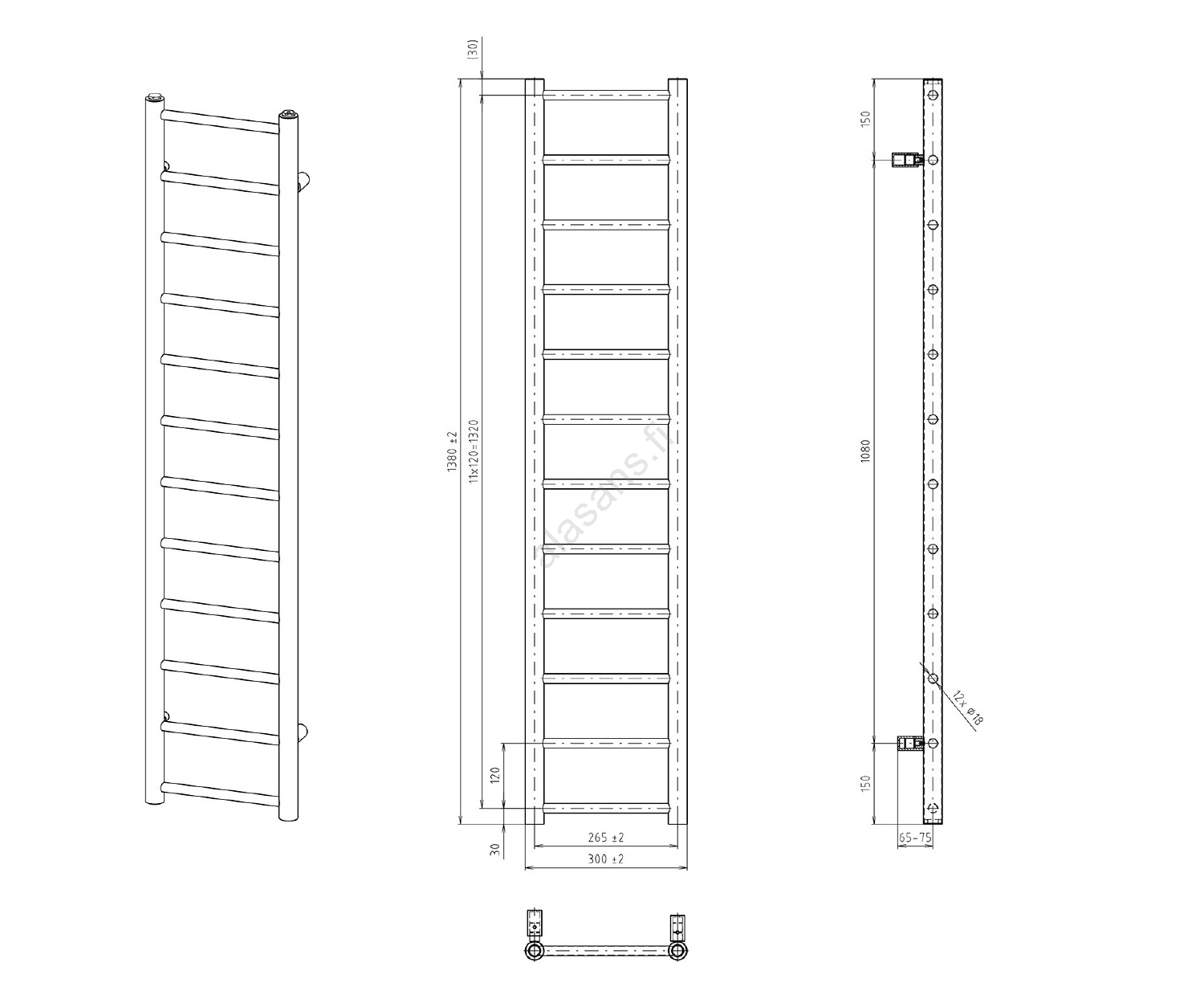 Sapho - DINA kylpyhuoneen pyyhekuivain 278W 30x138 cm valkoinen | Alasans