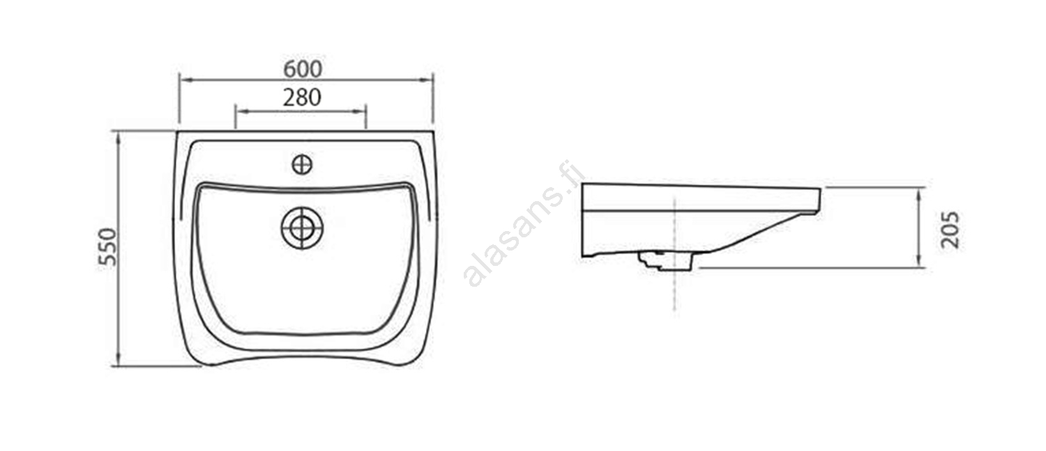 • Sen mitat ovat 600x550 mm ja se on valkoinen.