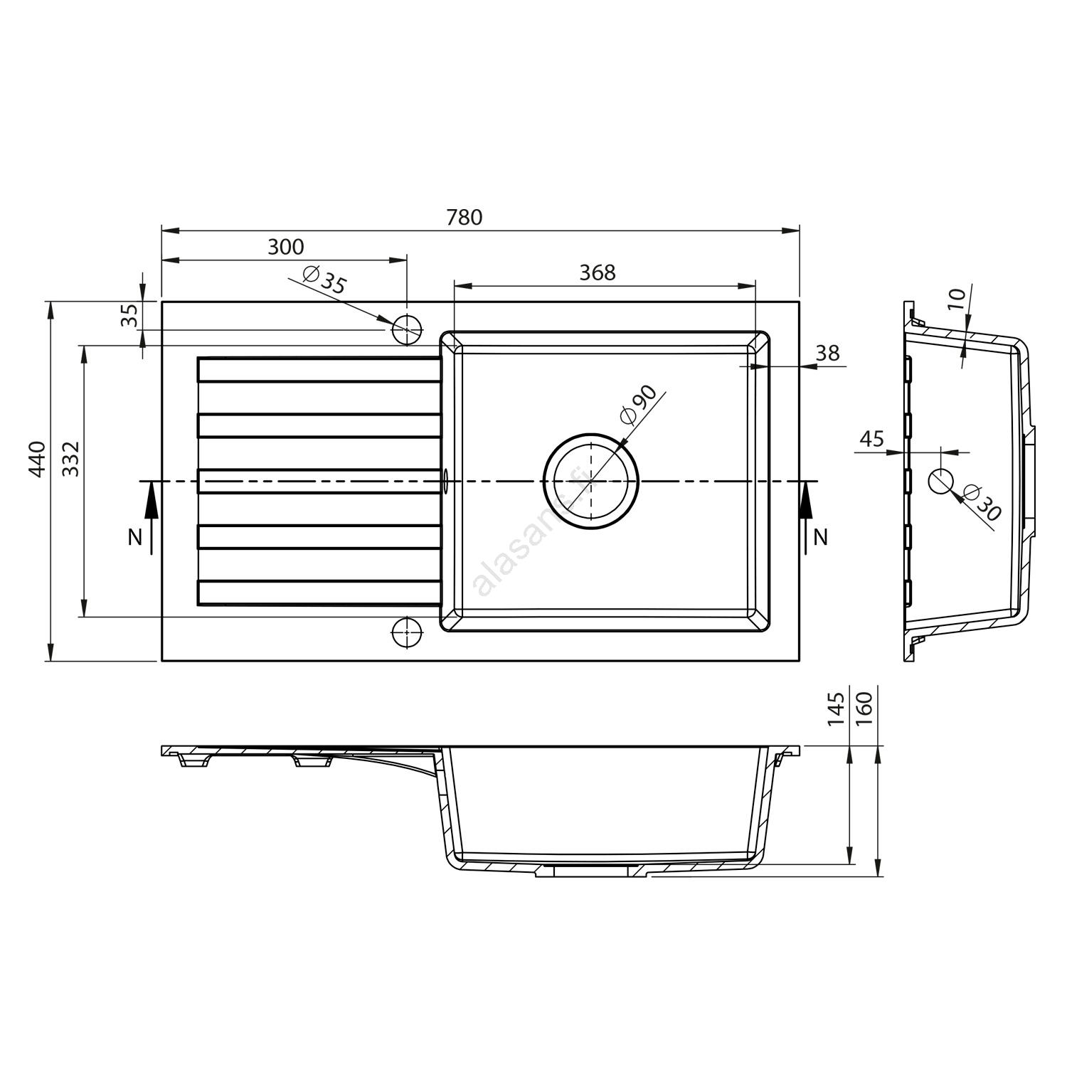 • Allas on valmistettu graniitista ja siinä on valkoinen viimeistely.