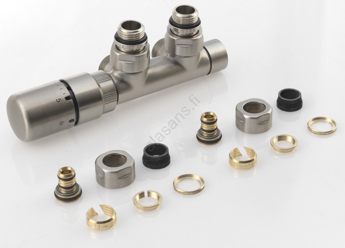 Sapho - Termostaattinen liitossetti keskiliitäntään TWIN, vasen/mattapintainen ruostumaton teräs