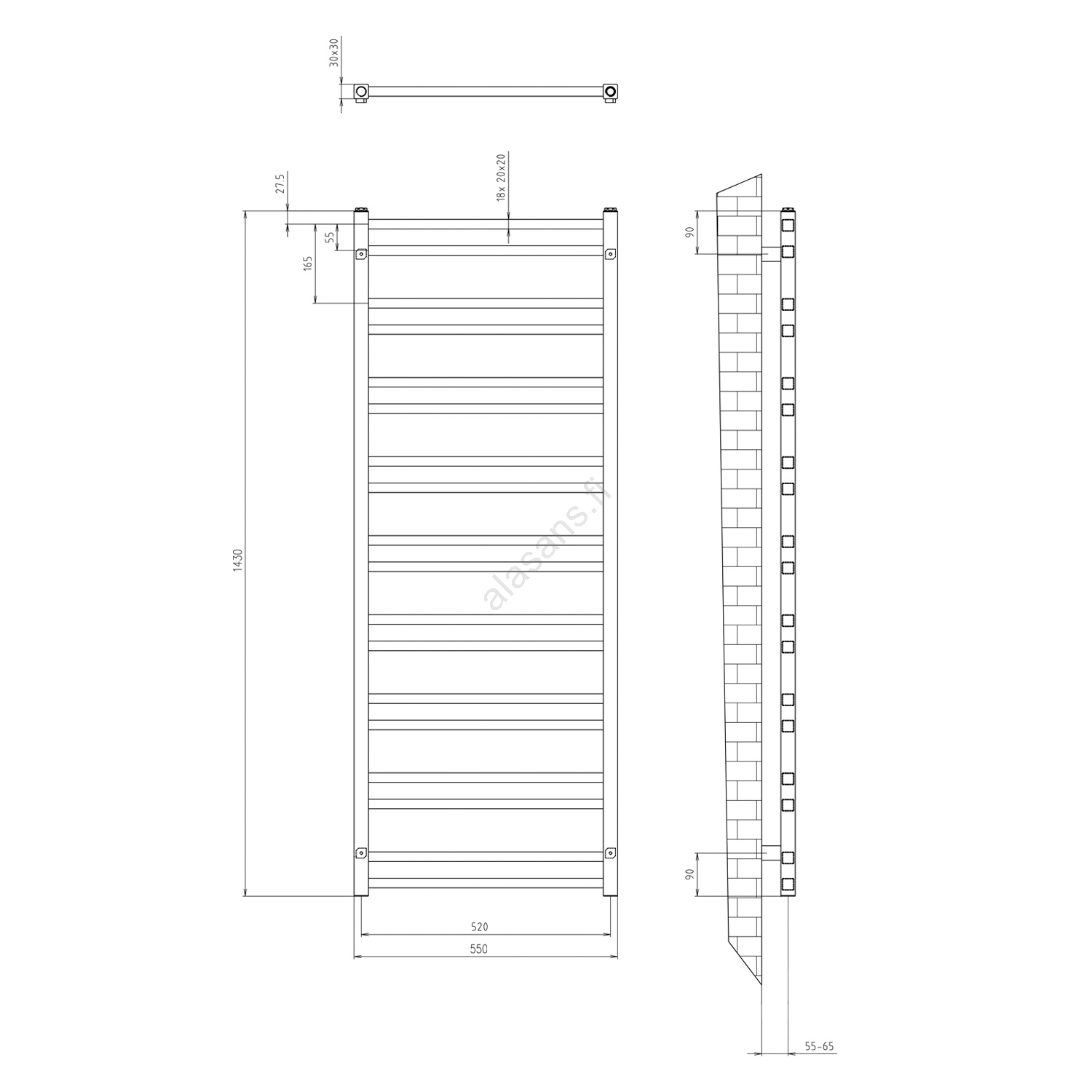Sapho - Kylpyhuoneen pyyhekuivain METRO DOS 476W/230V 55x143 cm kiiltävä kromi | Alasans