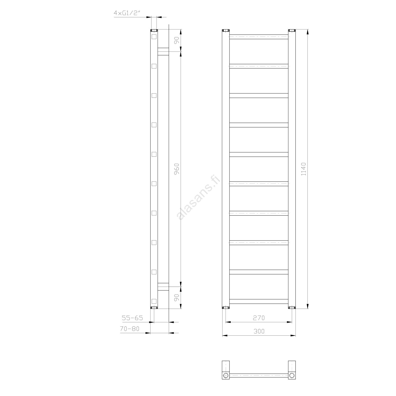 Sapho - Kylpyhuoneen pyyhekuivain METRO LIGHT 211W 30x114 cm, valkoinen | Alasans
