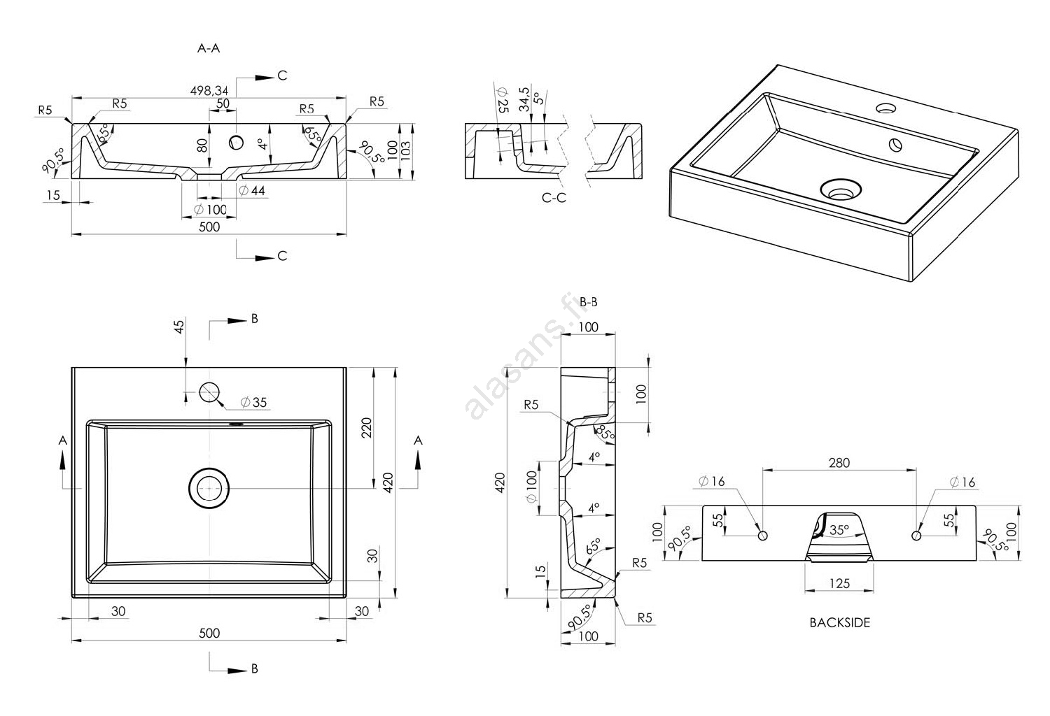 Sapho - ORINOKO tasolle asennettava pesuallas 50x42 cm marmori/valkoinen | Alasans