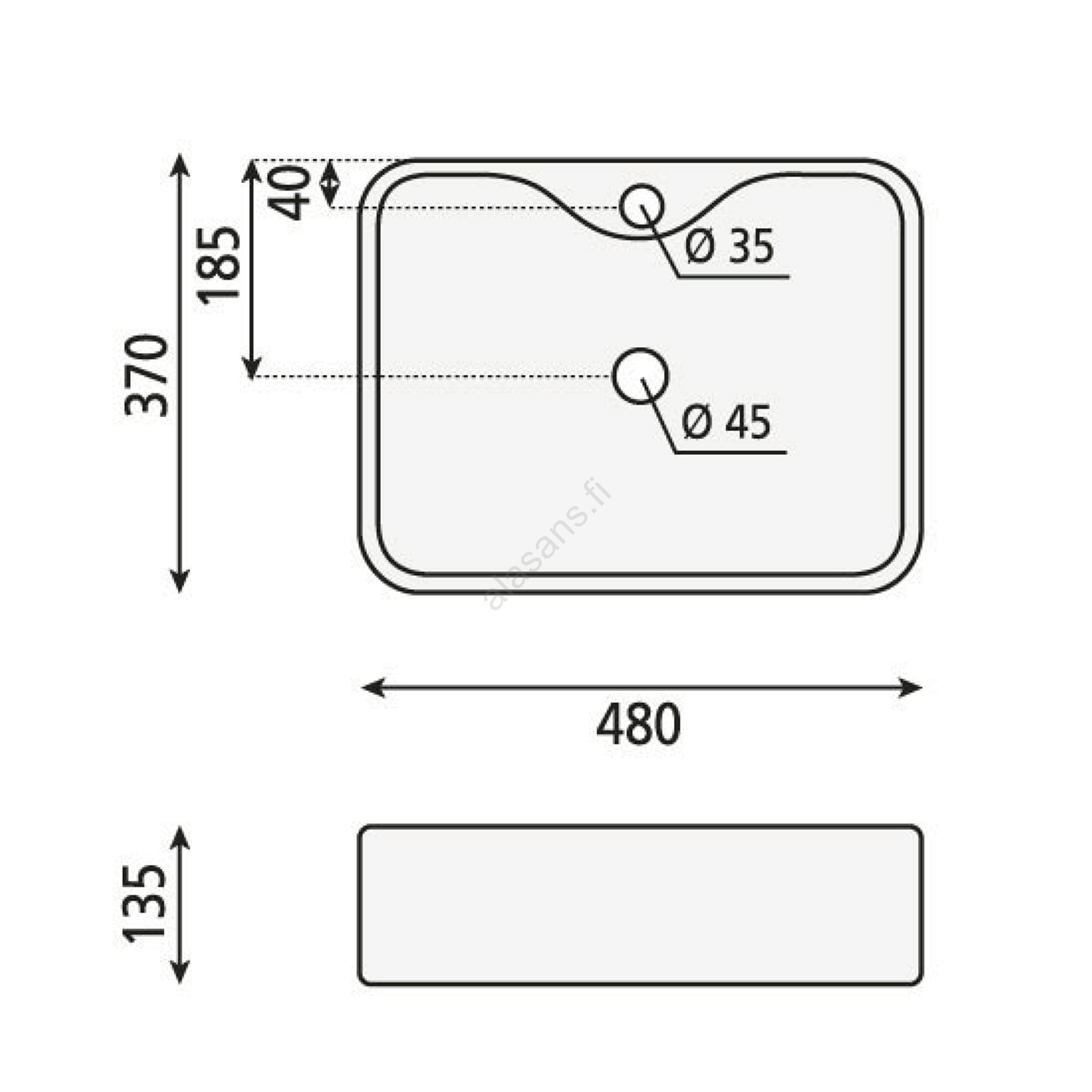 • Sen mitat ovat 480x370 mm ja muoto on suorakulmainen.