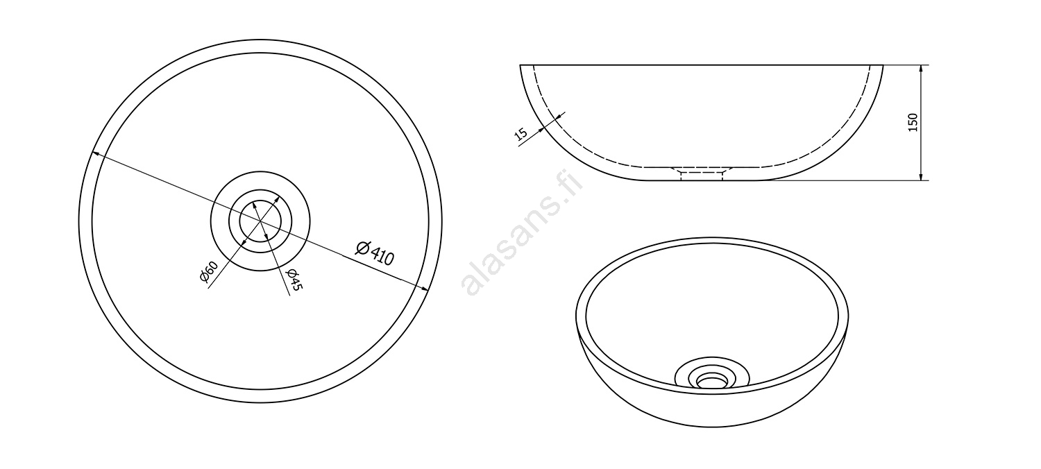 • Sapho - PRIORI pesuallas tasolle Ø 41 cm keramiikka/harmaa