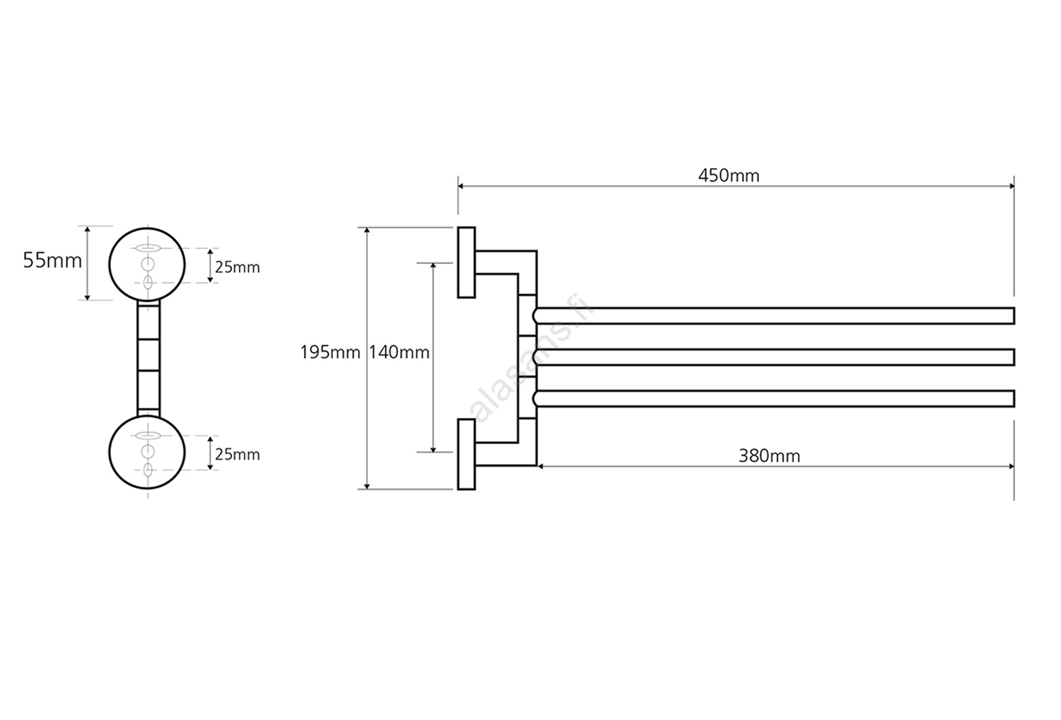 Sapho - Seinäkiinnitteinen kääntyvä pyyhekoukku X-ROUND 19,5x45 cm kiiltävä kromi | Alasans