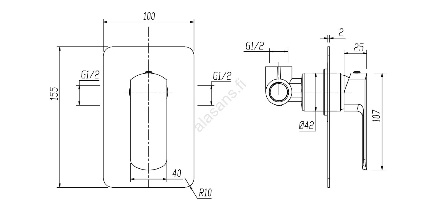 Sapho - Suihkuhana piilotettuun asennukseen MIXONA, kiiltävä kromi | Alasans