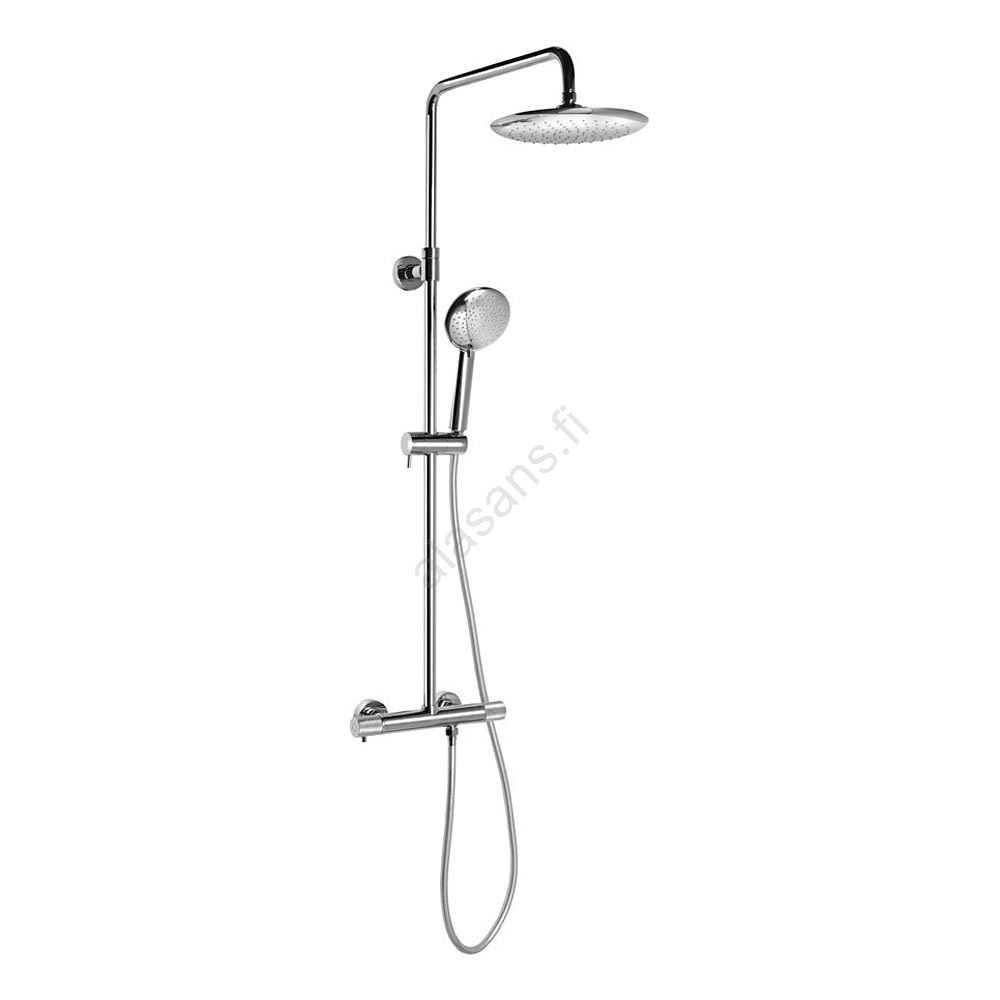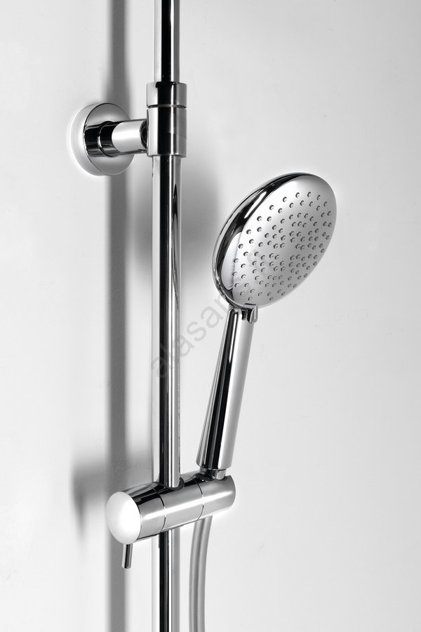 • Suihkupylväällä on hoikat linjat ja teollishenkiset yksityiskohdat.