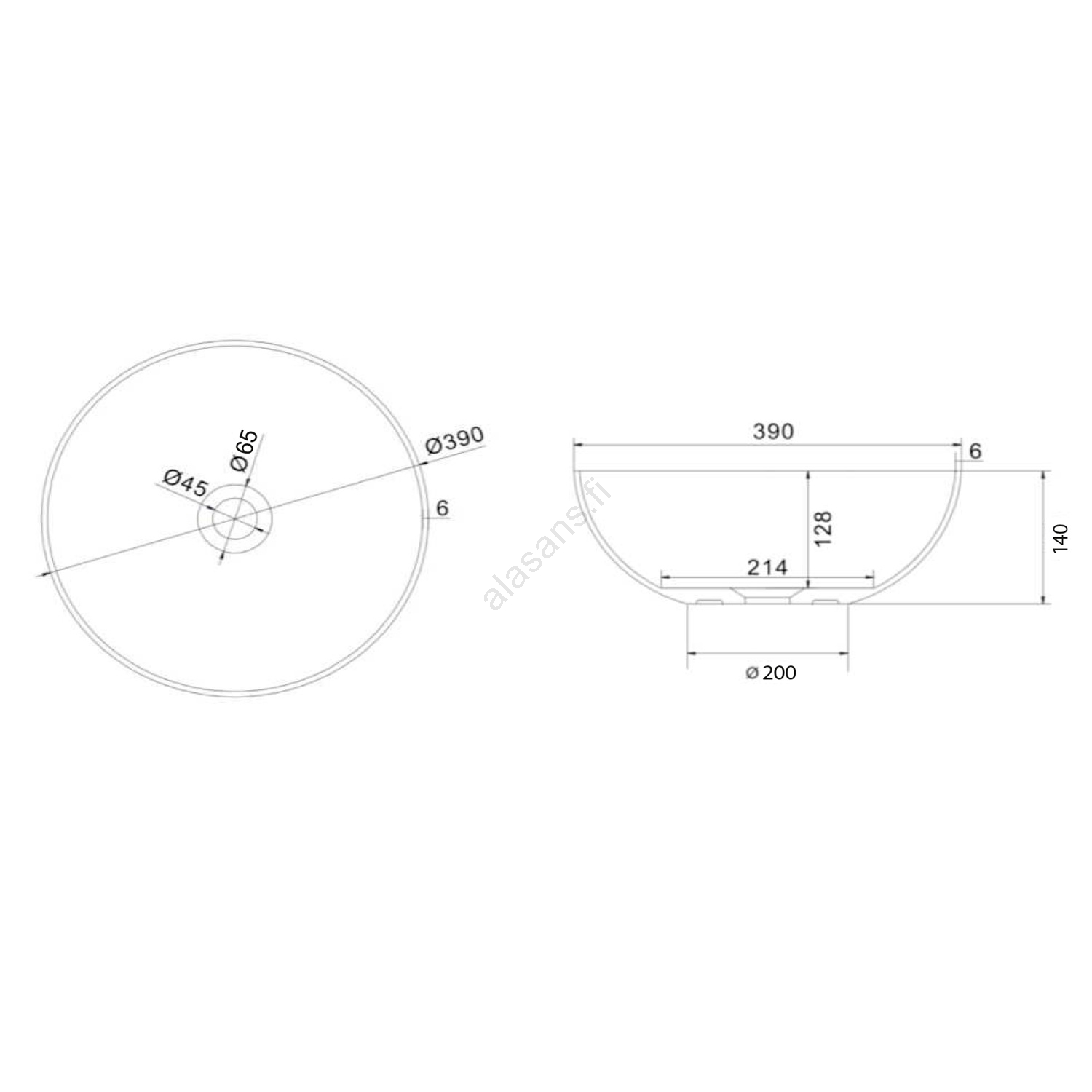• Sapho - FORMIGO tasopäälle asennettava pesuallas Ø 39 cm, betoni/mattaharmaa