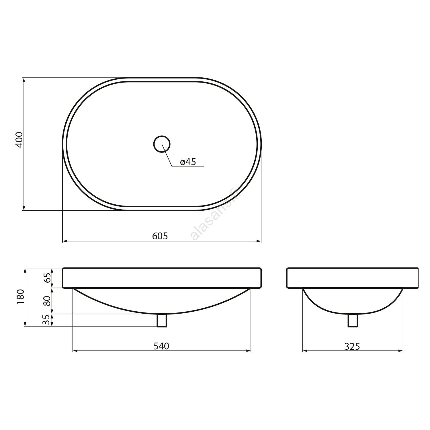 Sapho - Upotettava pesuallas LIMA 60x40 cm keramiikka/valkoinen | Alasans