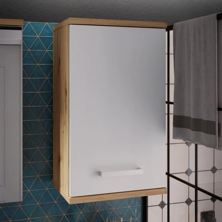 Seinäasennettava kylpyhuonekaappi VENOM, valkoinen/artisaanitammi | Alasans