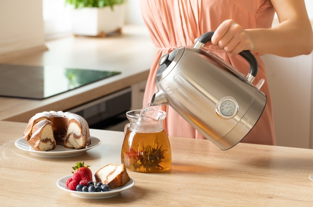 • Vedenkeitin lämpömittarilla, jonka ansiosta saavutat optimaalisen lämpötilan erityyppisille teelle, kahville jne.