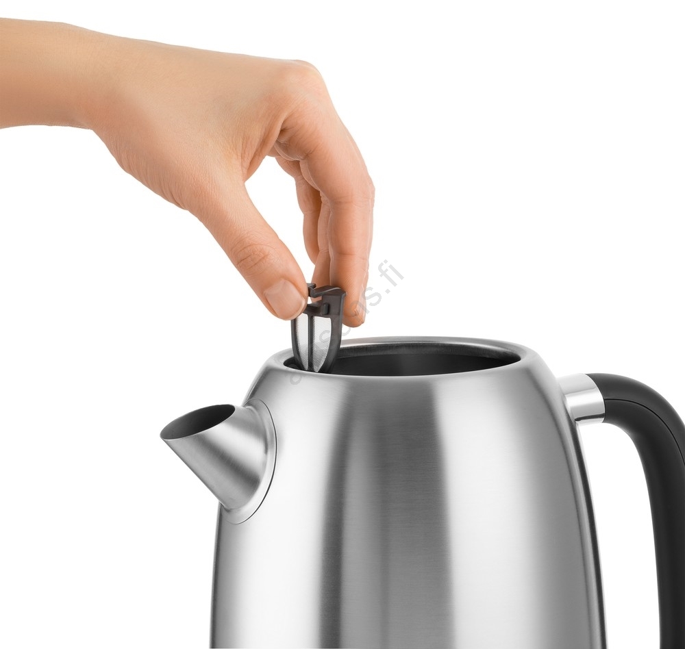 • Vedenkeittimessä on irrotettava ja pestävä suodatin lian ja sedimenttien keräämiseksi.