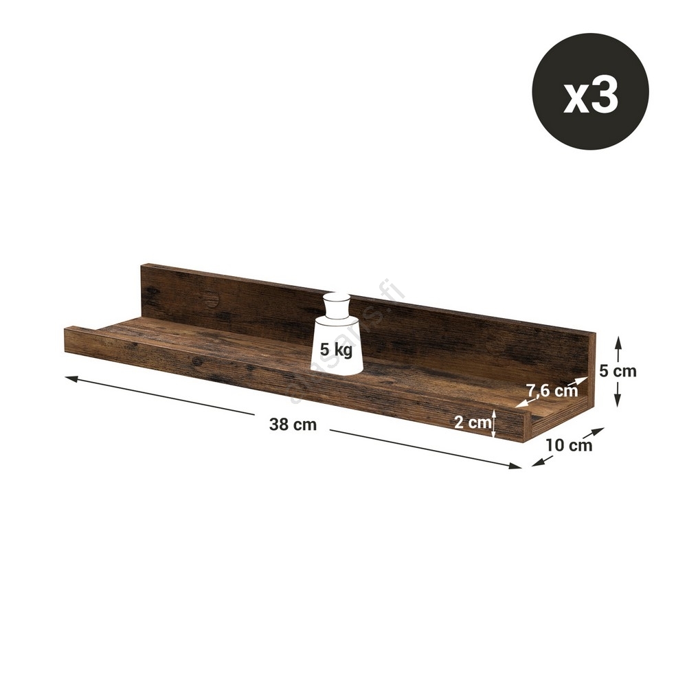 • Setti 3 kpl SHELFY-seinähyllyjä, ruskea
