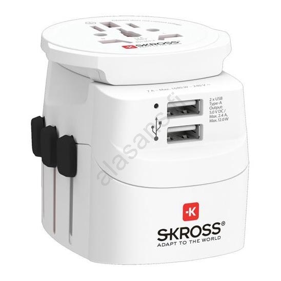 SKROSS PA46W - Matka-adapteri PRO Light USB 2A - World, UK+USA+AUS/CN 2x USB-A 12W | Alasans