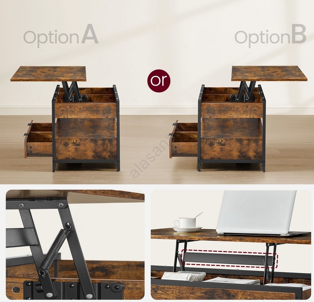Sohvapöytä NYRO nostettavalla pöytälevyllä ruskea/musta | Alasans