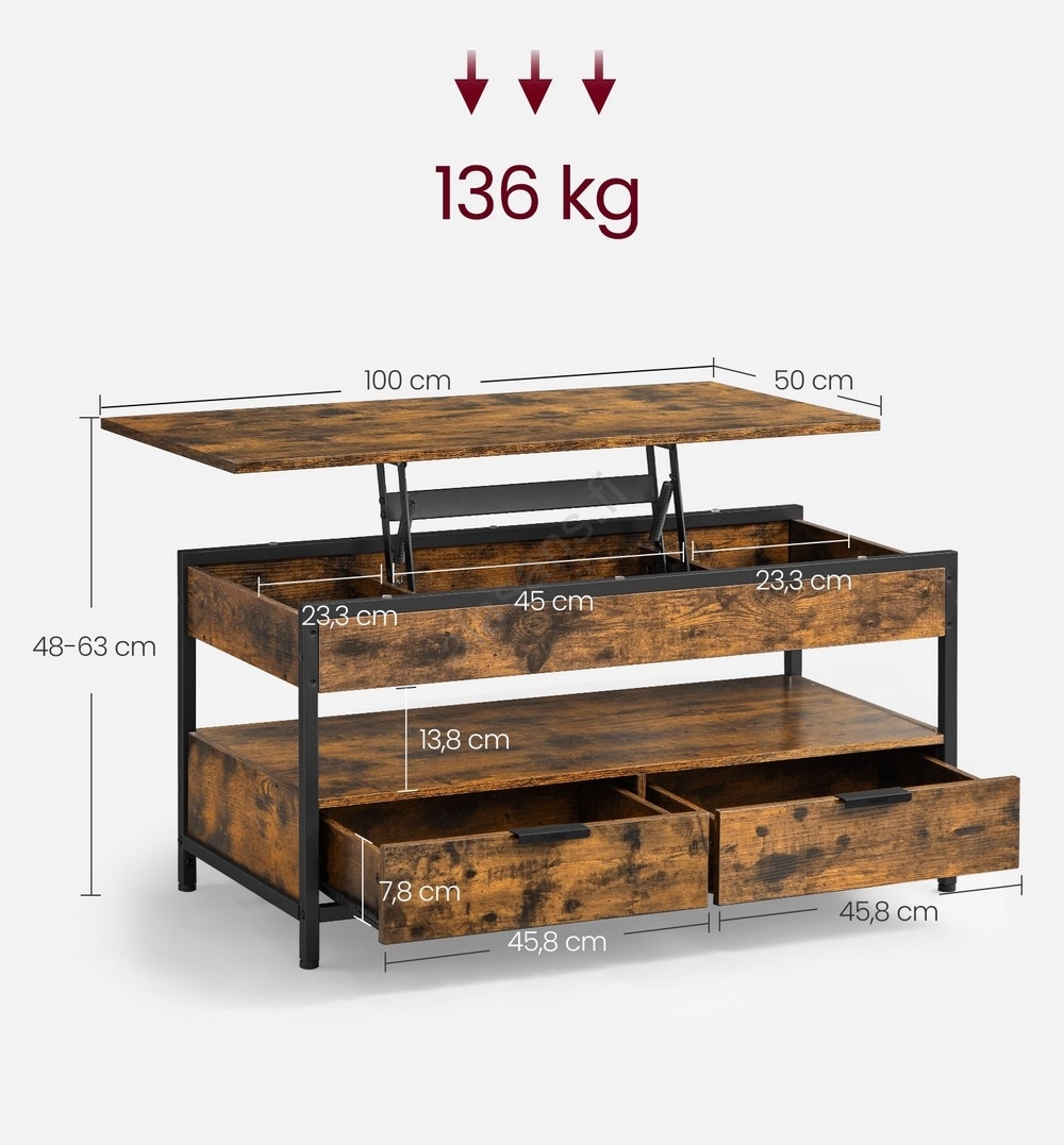 Sohvapöytä NYRO nostettavalla pöytälevyllä ruskea/musta