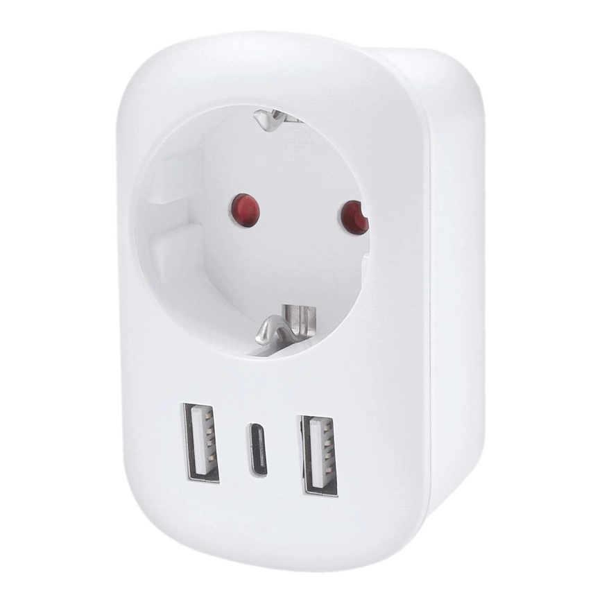 Solight PA03UK - Matka-adapteri UK 230V, 2x USB-A + 1x USB-C | Alasans
