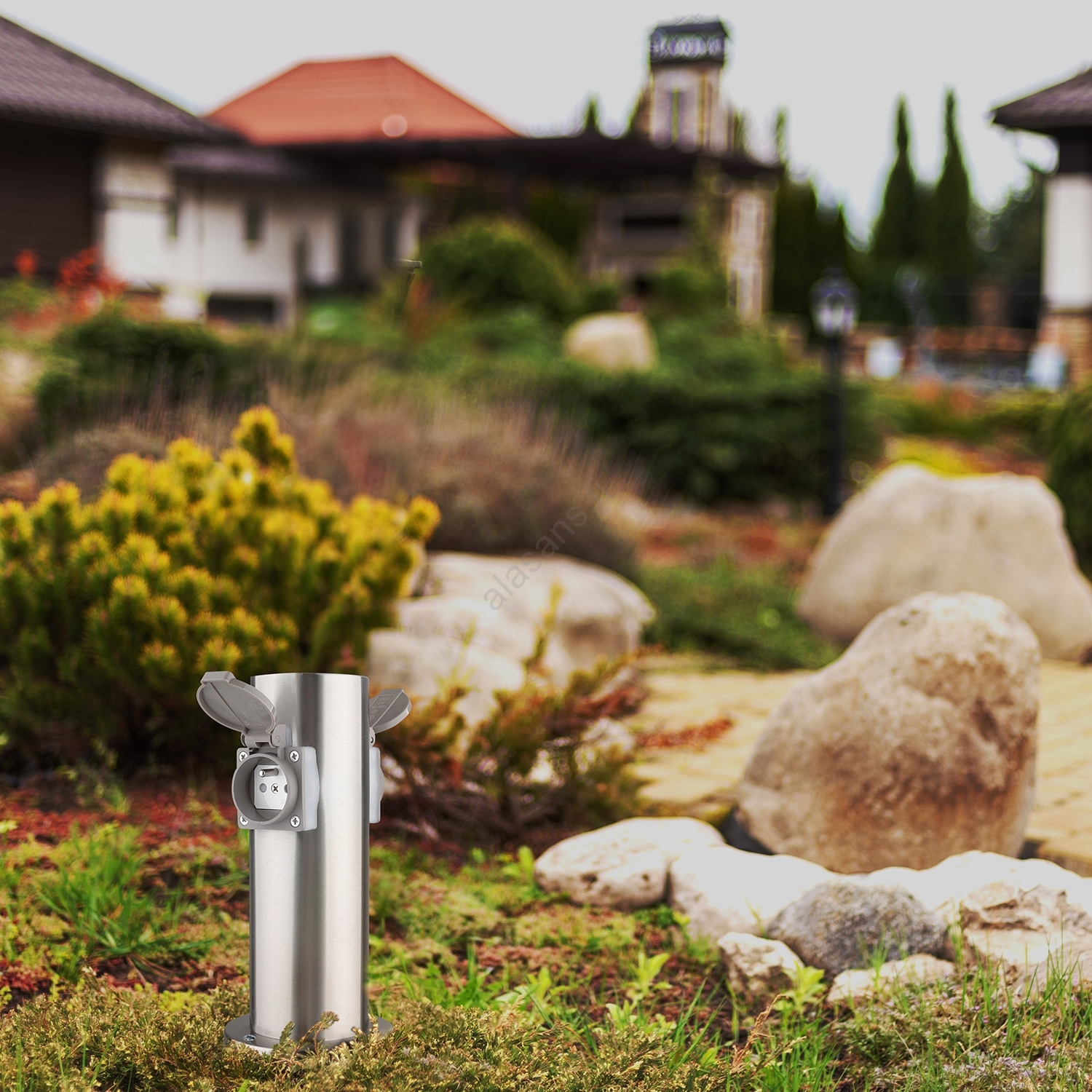 Pistorasiat ja jakajat, Pistorasiatolppa ulkokäyttöön, Sähköasennus, Sähkömateriaali, Ulkovalaistus, Valot
