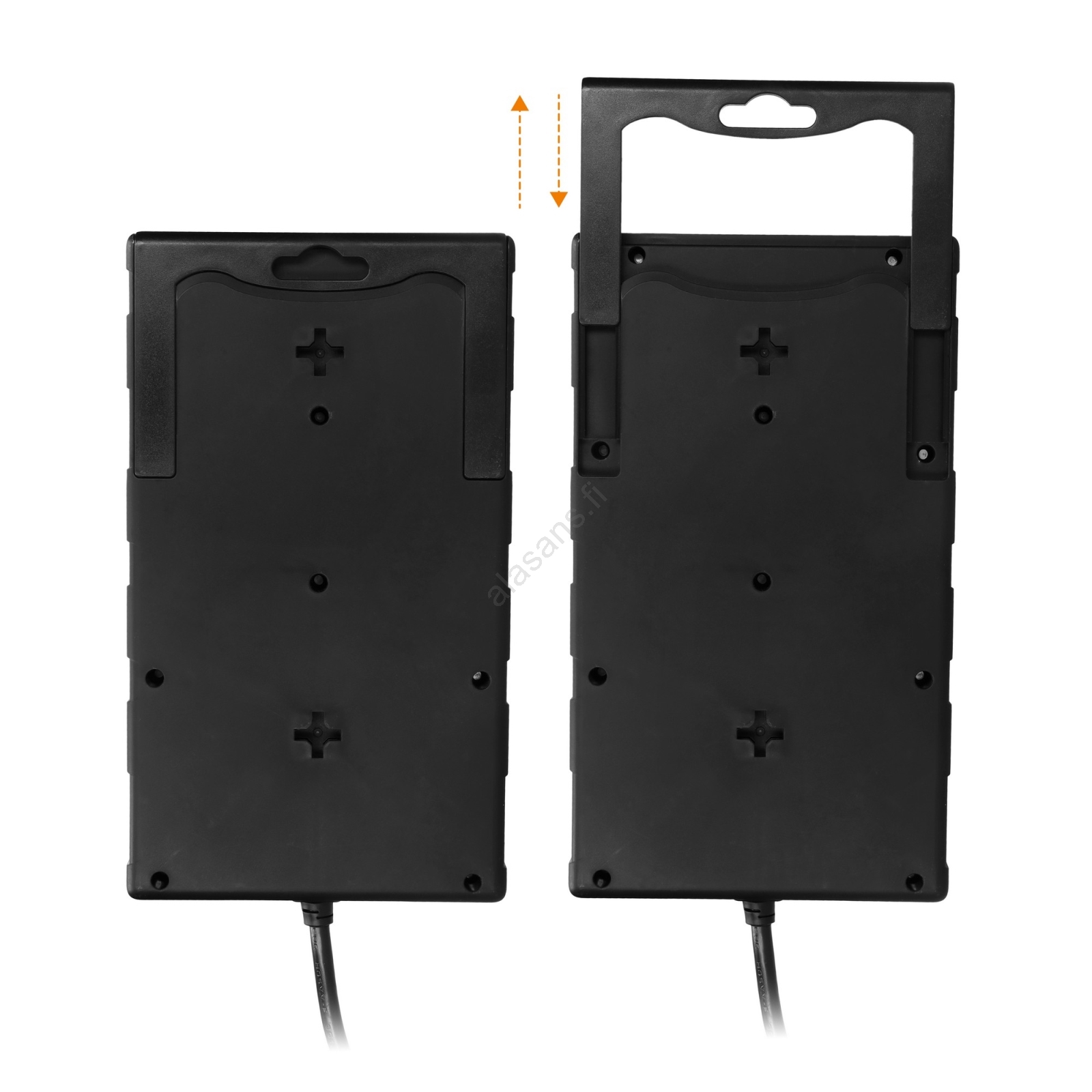 • Ulosvedettävä pidike kaapeleiden järjestelyyn, ripustukseen tai kantamiseen.