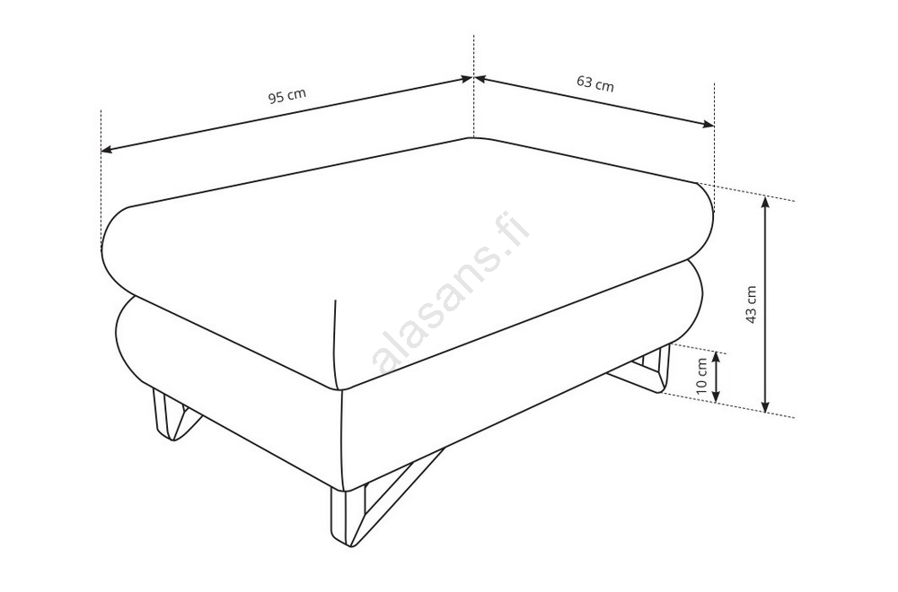 • Tyylikkäät puiset jalat (korkeus 10 cm) antavat modernin ilmeen ja takaavat samalla vakauden ja pitkän käyttöiän.