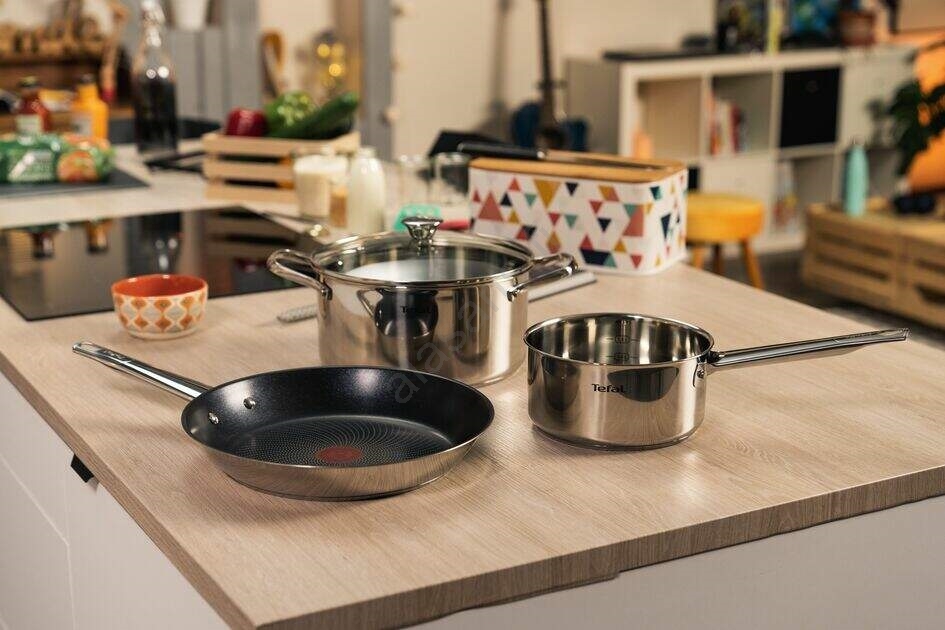 • Tefalin Cook Eat -ruostumattomasta teräksestä valmistettu astiasarja sopii kaikille liesityypeille.
