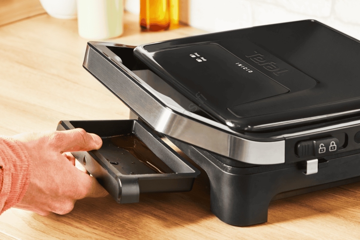 • Tarttumattomat levyt helpottavat grillausta ja puhdistusta; mukana rasvankeräyskaukalo – helpottaa huoltoa ja lisää hygieniaa.