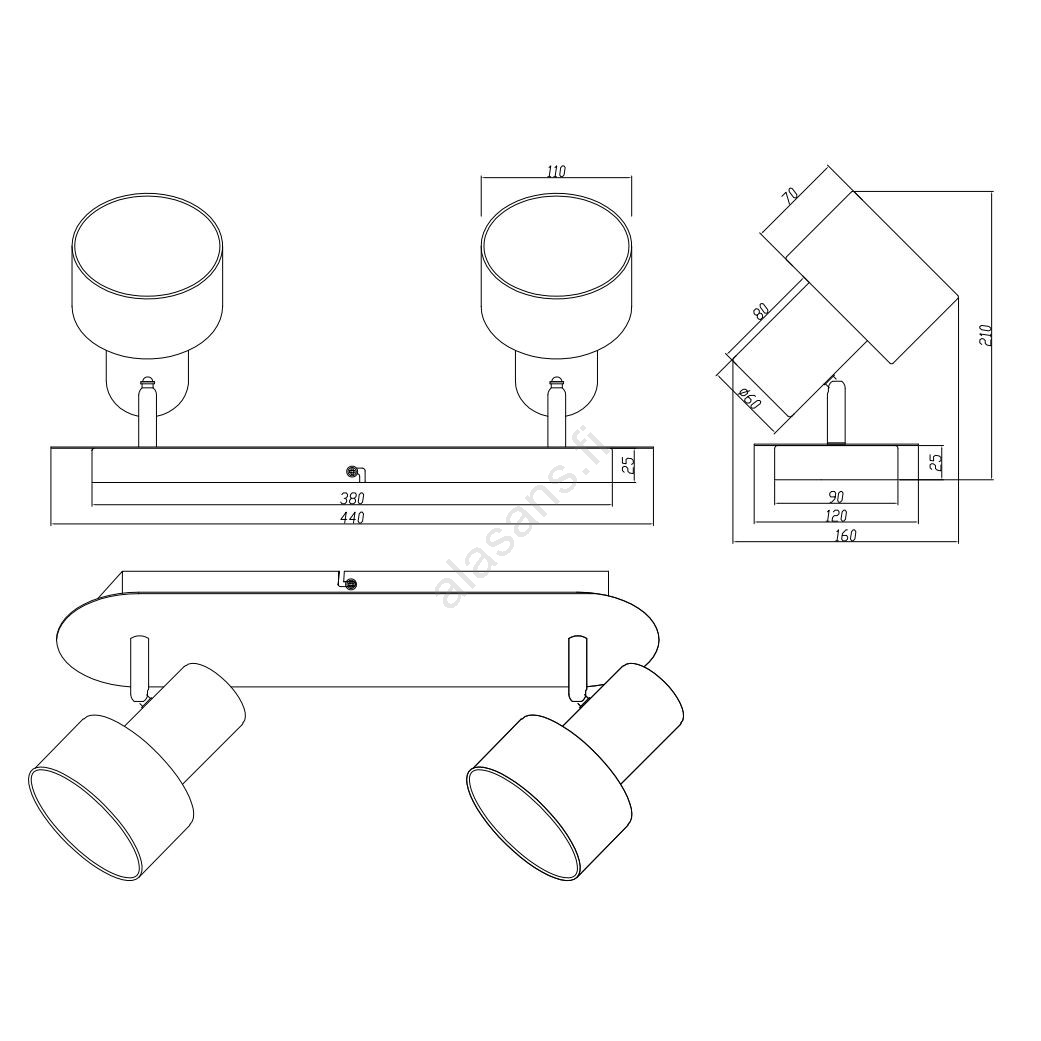 Trio - Kohdevalo WAILER 2xGU10/5W/230V musta | Alasans