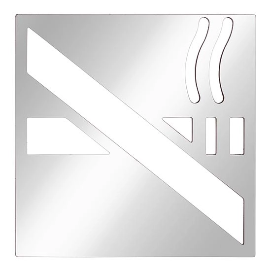 • Ruostumattomasta teräksestä valmistettu ikoni piktogrammilla "Tupakointi kielletty" selkeään tupakoimattomien tilojen merkintään.