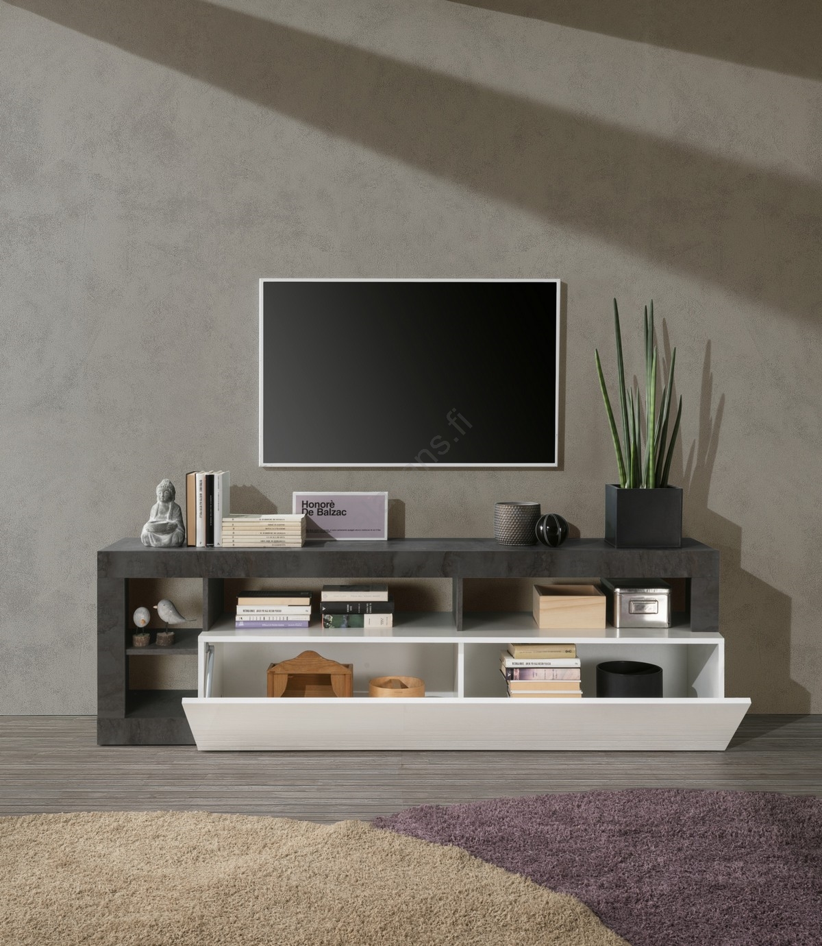 • TV-taso LENOR valkoinen/harmaa betoni