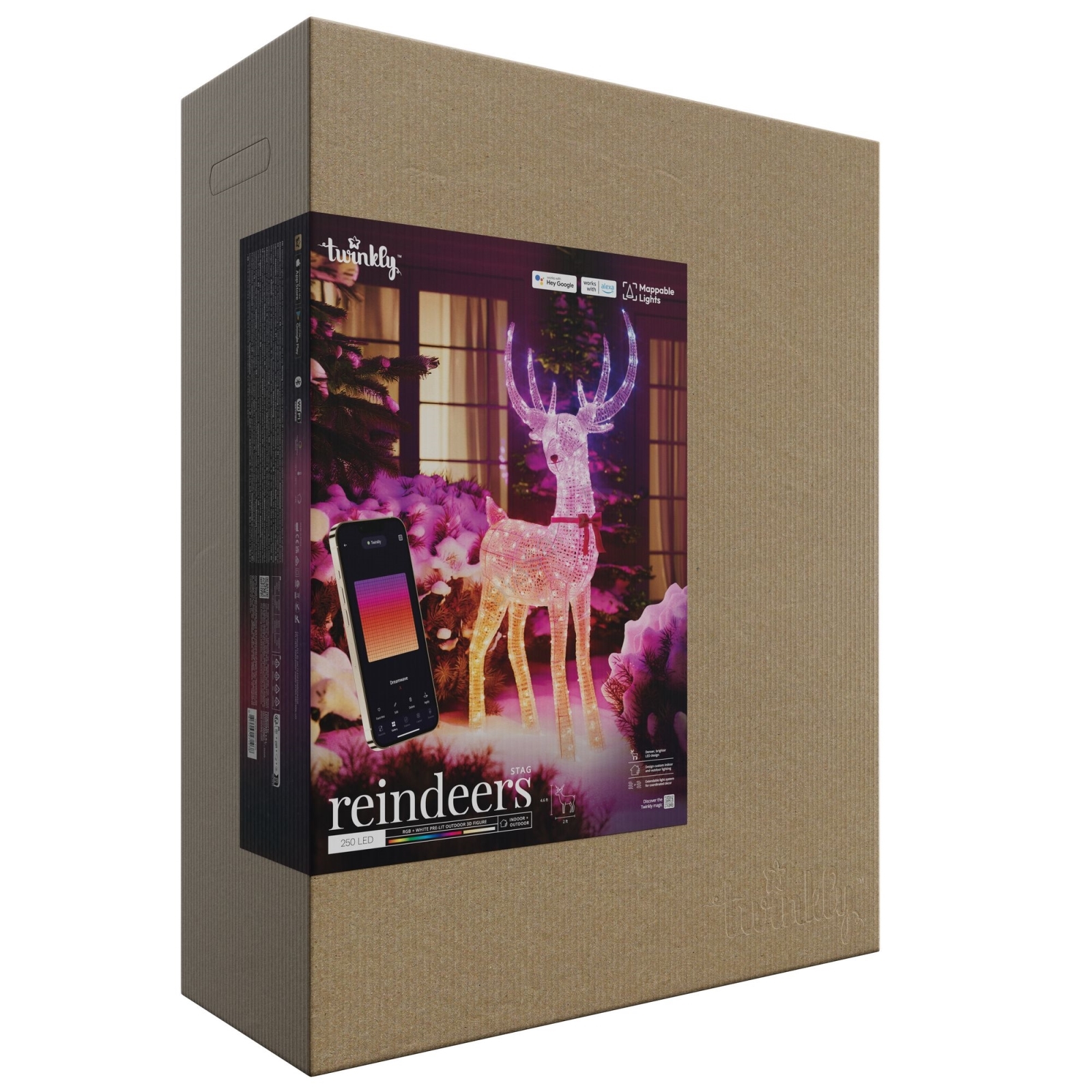Twinkly - LED RGBW himmennettävä ulkokäyttöinen jouluporo REINGEERS 250 LEDiä IP44 Wi-Fi