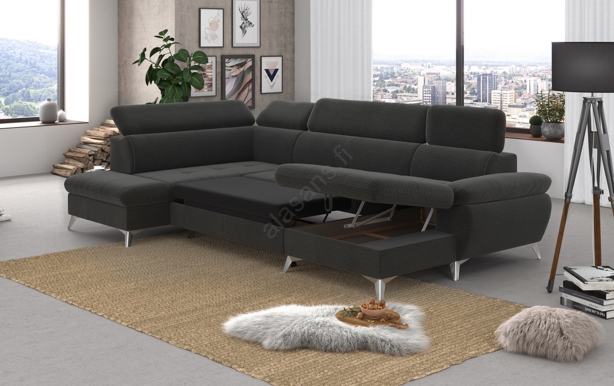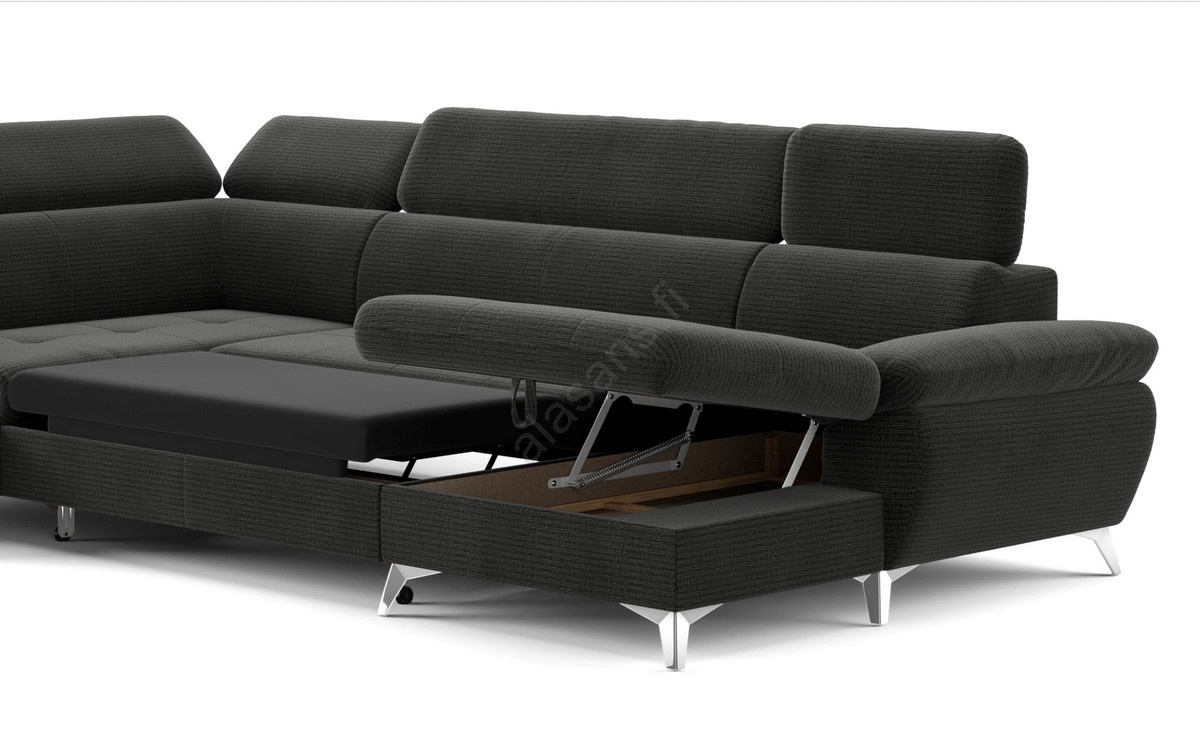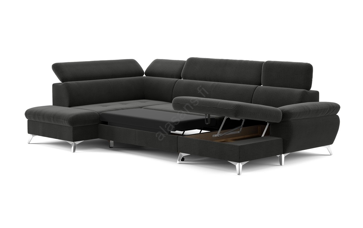 U-muotoinen kulmasohva CATANIA vasen, grafiitti, säilytystilalla | Alasans