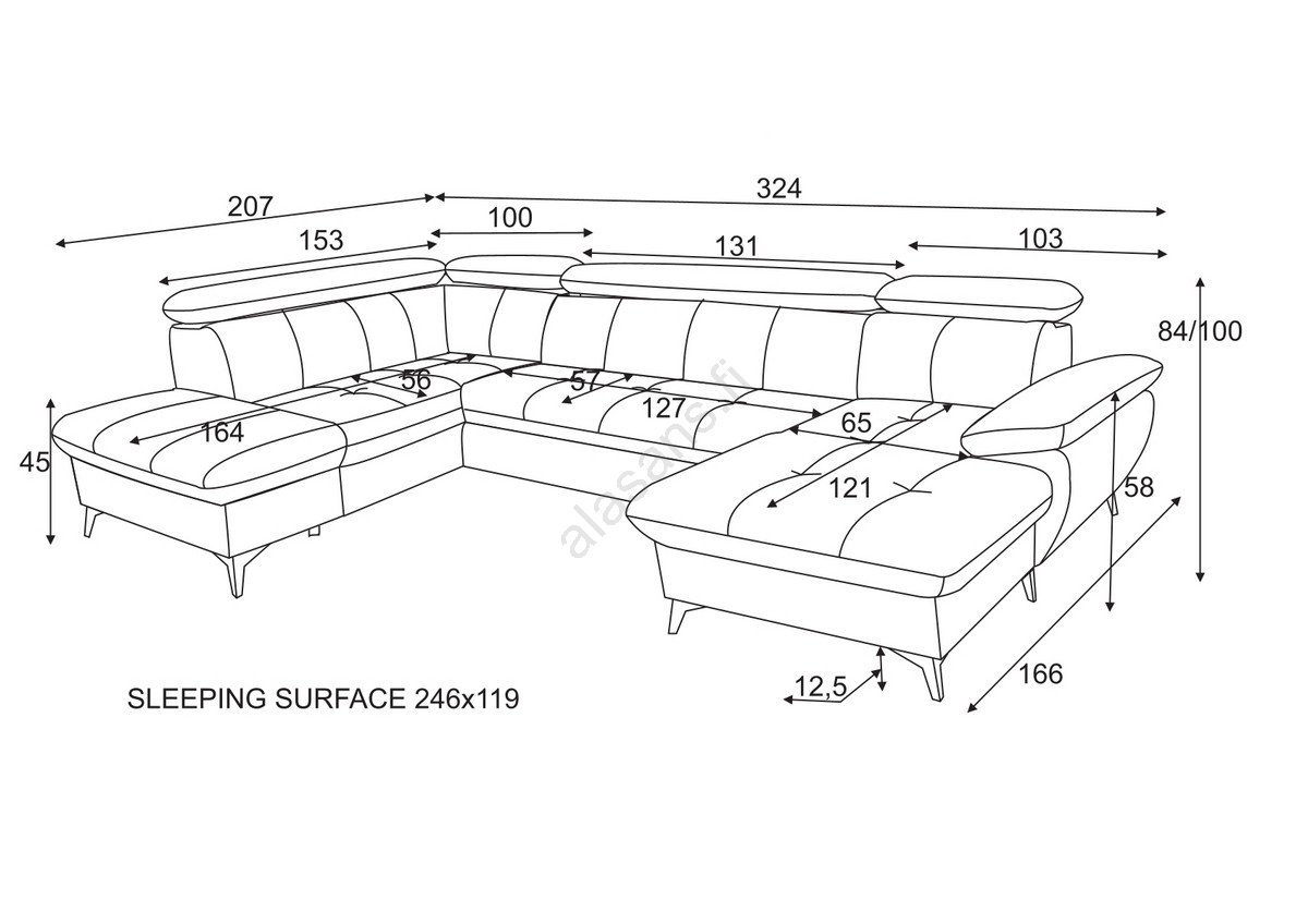 Huonekalut, Sohvaryhmät, Taitettavat oleskelutilat, U-muotoiset sohvaryhmät