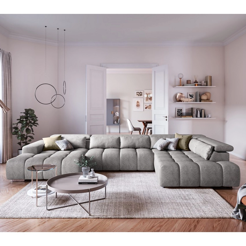 Kulmasohva pääntukityynyillä U-mallinen TROPEA oikea harmaa