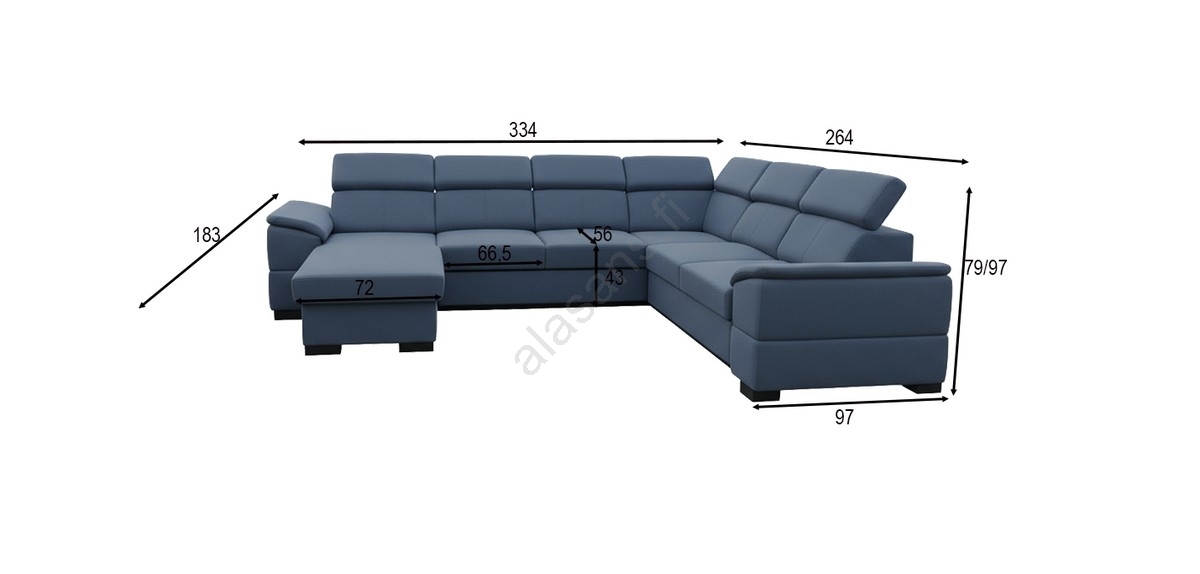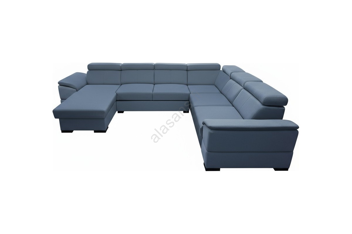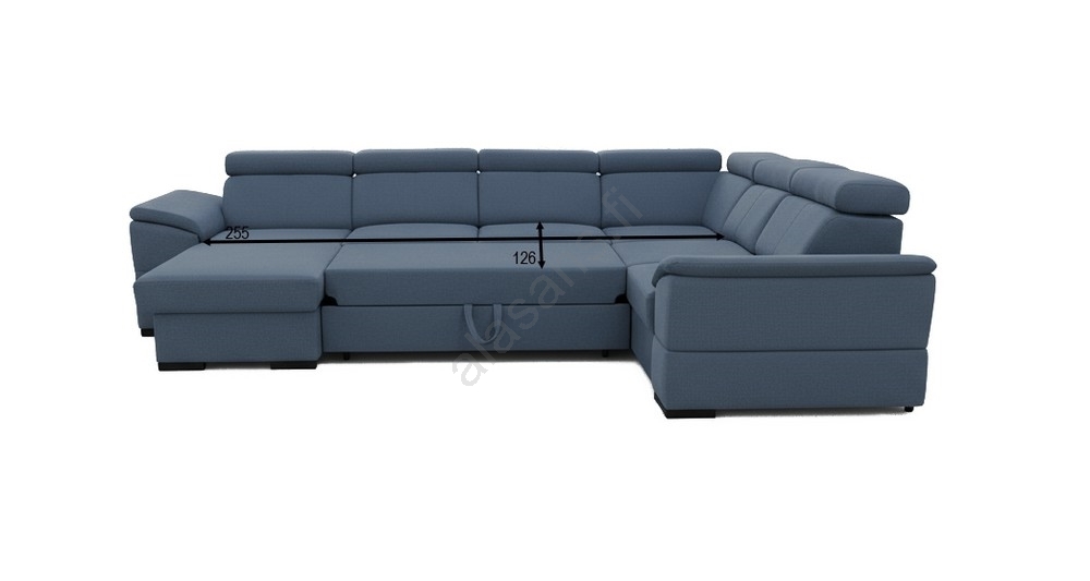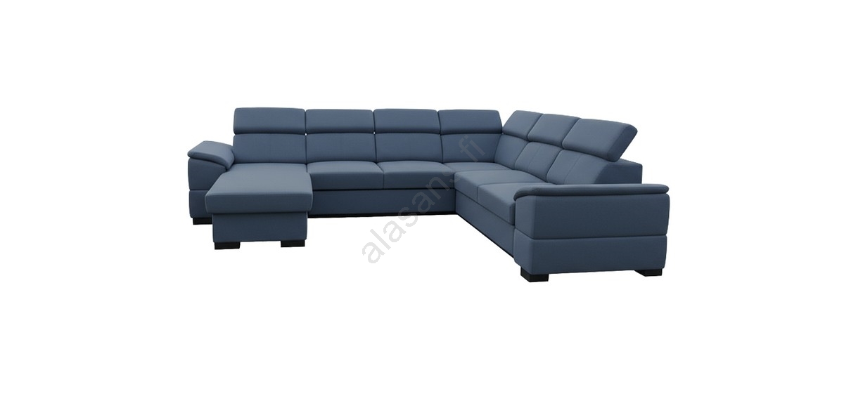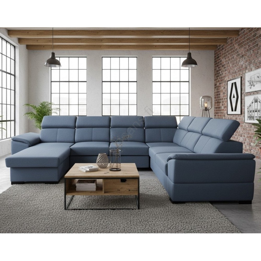 • U-muotoinen, käännettävällä kulmalla varustettu avattava vuodesohva säilytystilalla GRANADA, sininen