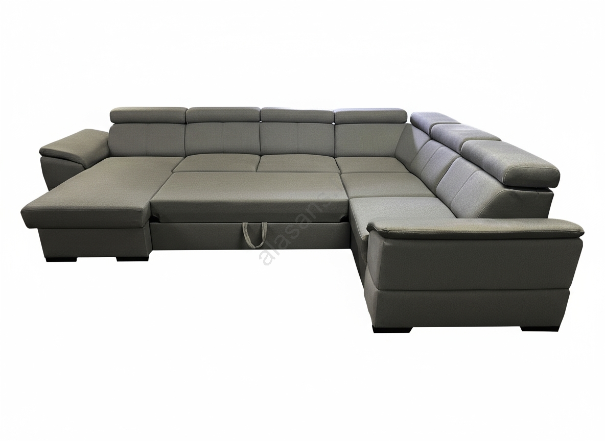 Avattava kulmasohva vaihdettavalla U-muotoisella kulmalla ja säilytystilalla GRANADA tummanharmaa |